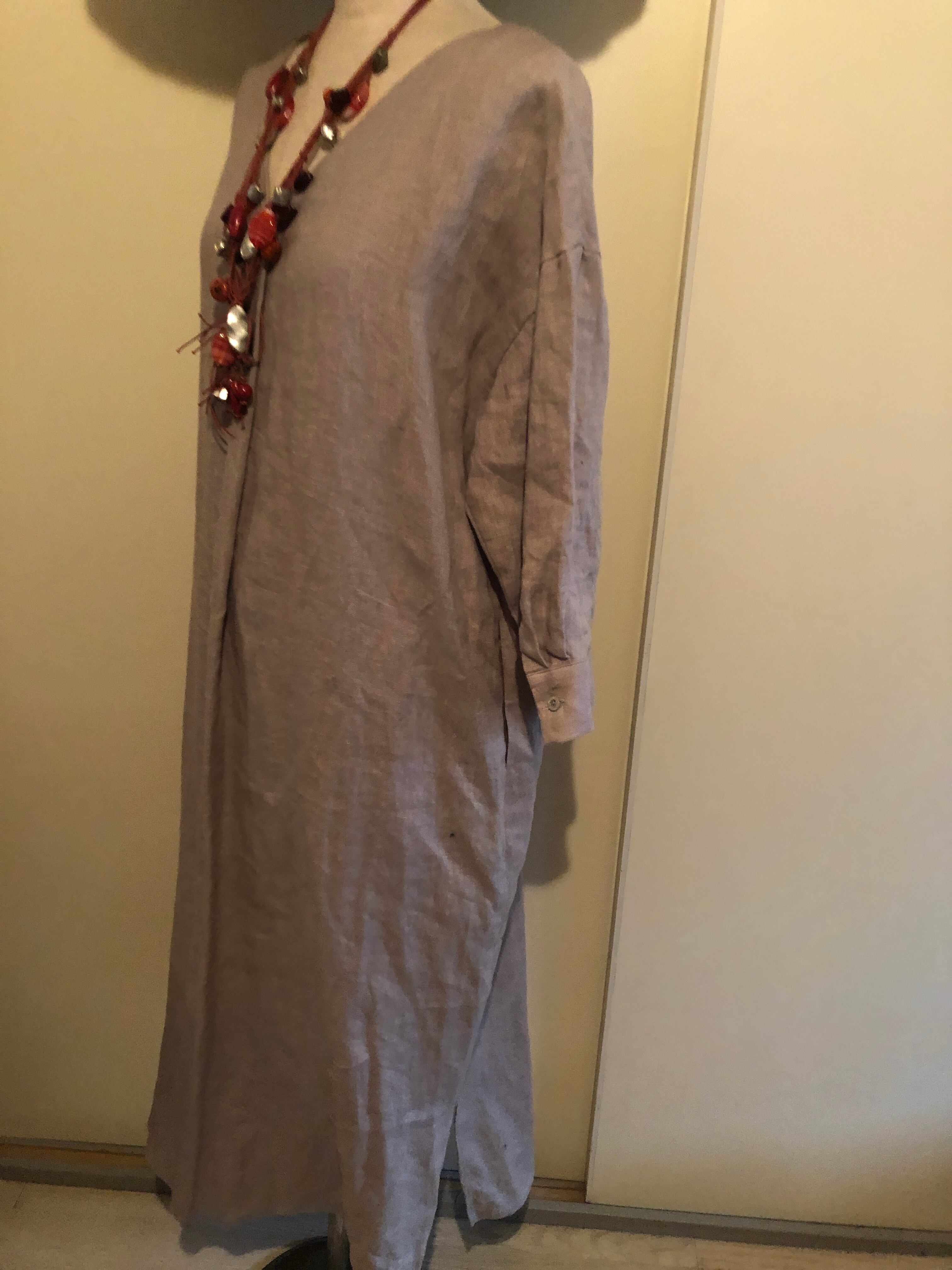 リネン100% 麻素材 ロングワンピース①