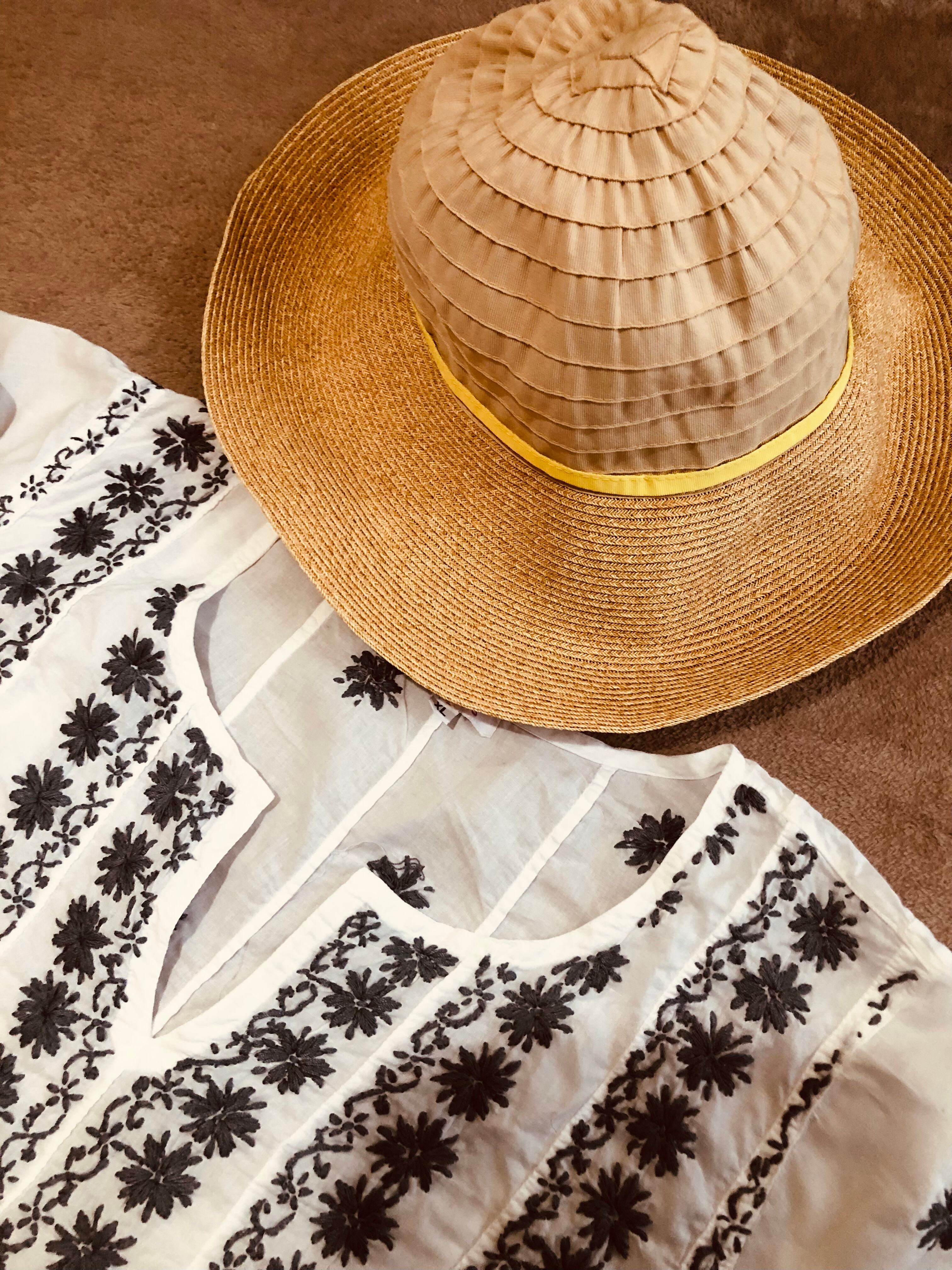 夏を惜しむ爽やかワンピース 麦藁帽子と、トートバッグの三点セット ※デニムは、入りません。