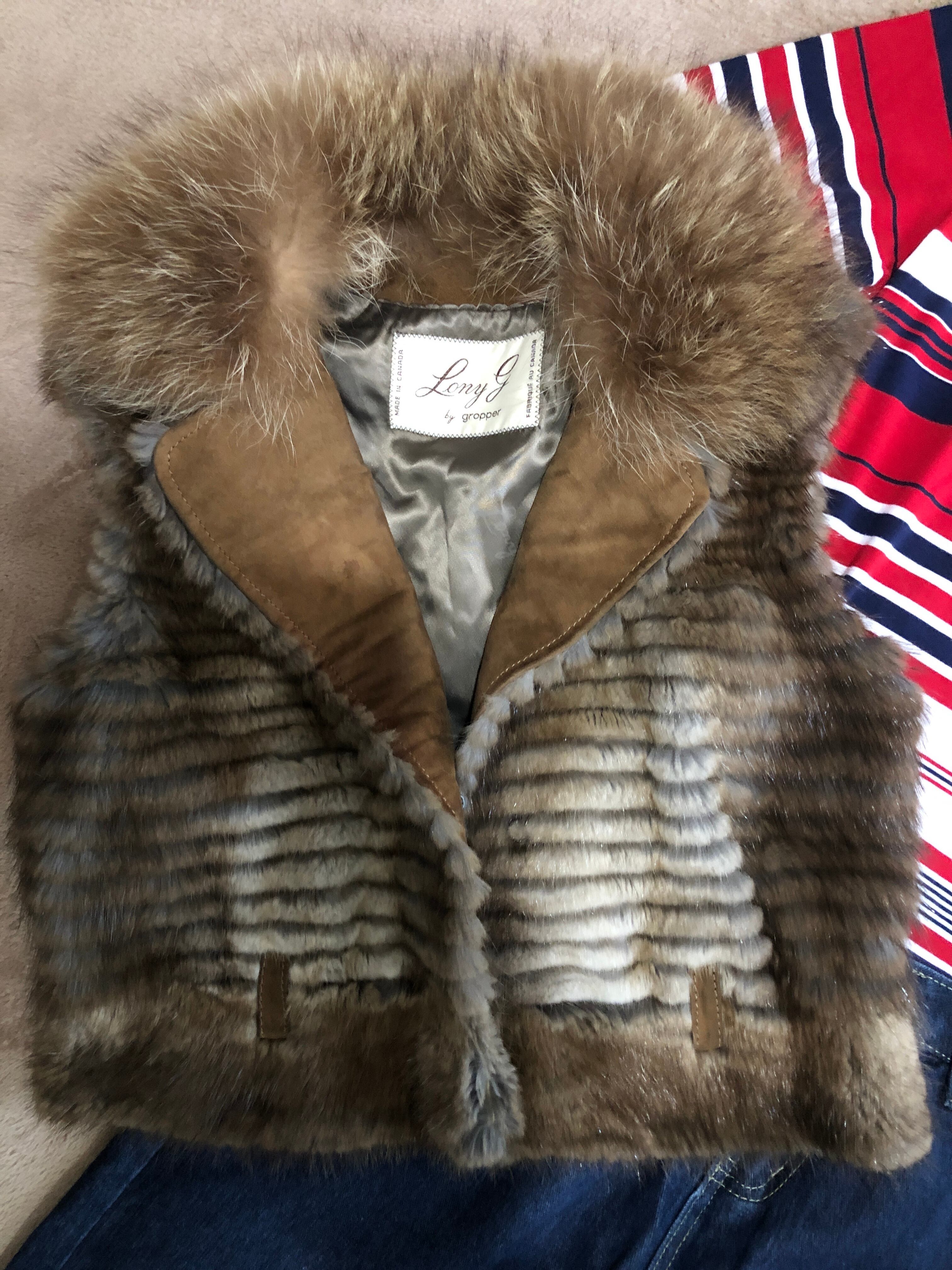 本物毛皮ベストとインディゴデニム三点セット Mサイズ