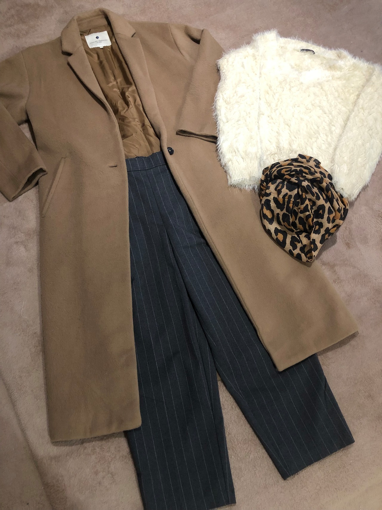 パンツは、短く着こなします。豹柄スヌード合わせました。カッコイイコーデ