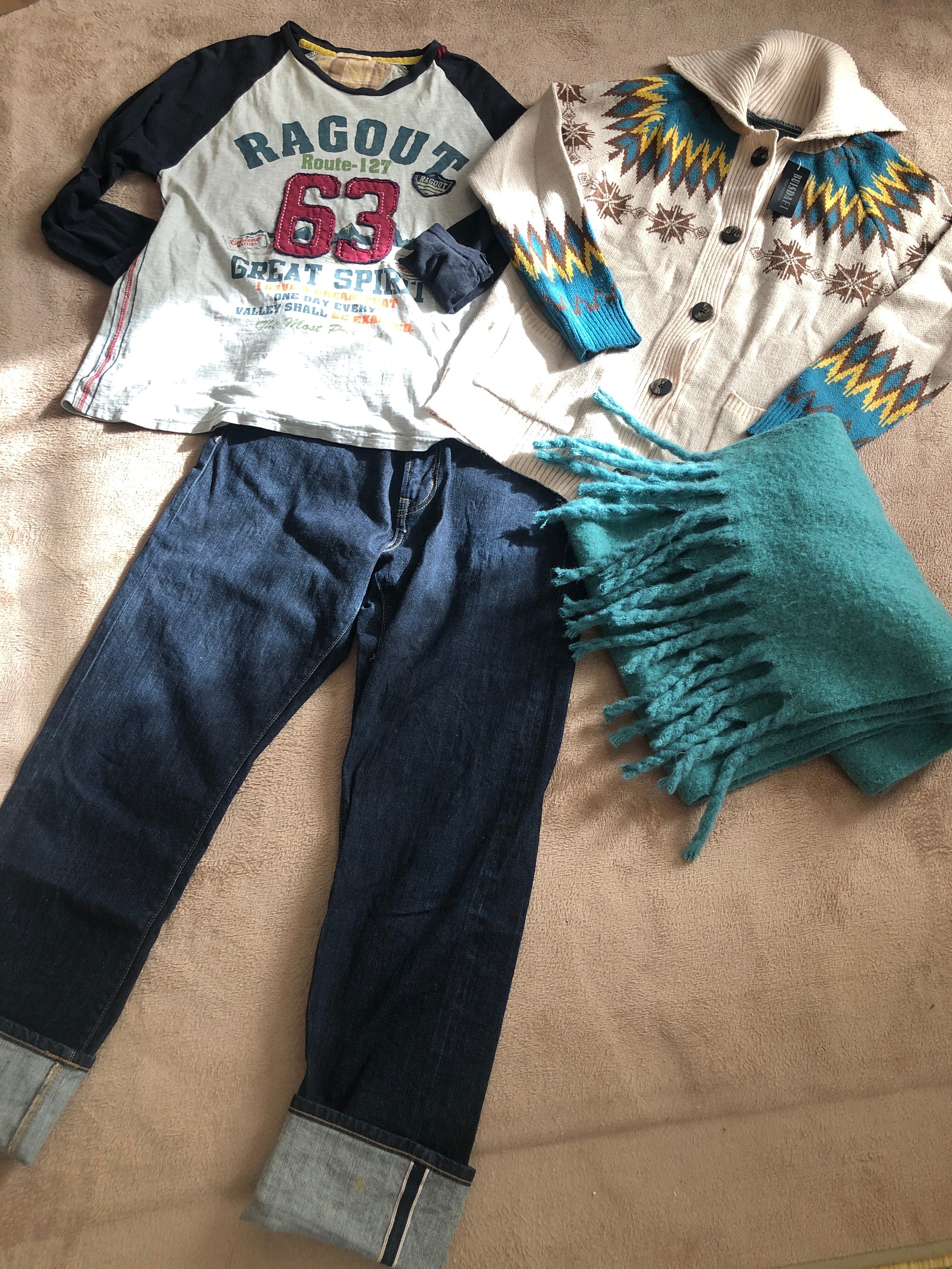 デニムは、with78迄の方。63くらいの方から78迄OK。ベルトでギュって締めて着こなして。